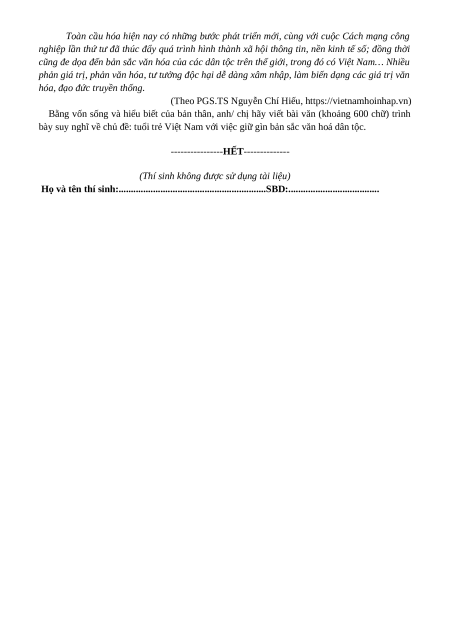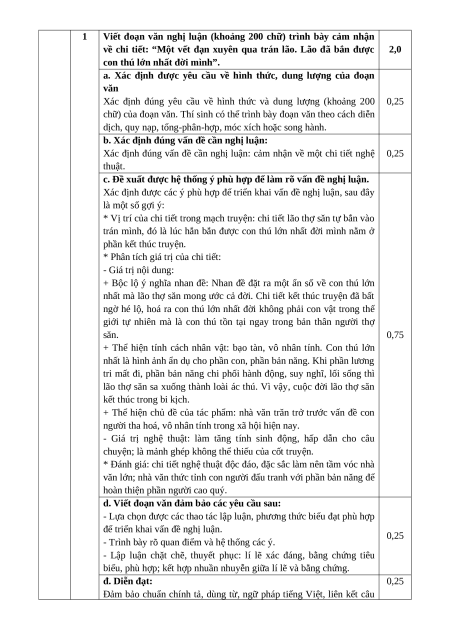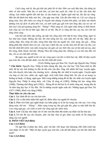 (Lưu ý: Chấp nhận những chia sẻ và góc nhìn chủ quan của HS, nếu lí giải thuyết phục) II VIẾT 6,0