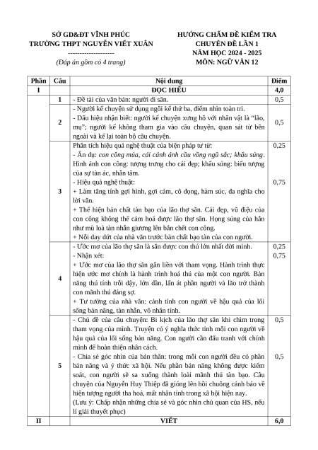 Đề thi thử tốt nghiệp THPT 2025 Ngữ văn Trường THPT Nguyễn Viết Xuân - Sở GD&ĐT Vĩnh Phúc