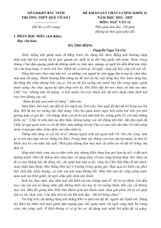 TRƯỜNG THPT QUẾ VÕ SỐ 1 NĂM HỌC 2024 - 2025 -------------------- MÔN: NGỮ VĂN 12