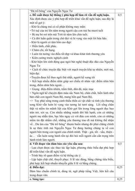 của đoạn văn. Thí sinh có thể trình bày đoạn văn theo cách diễn dịch,