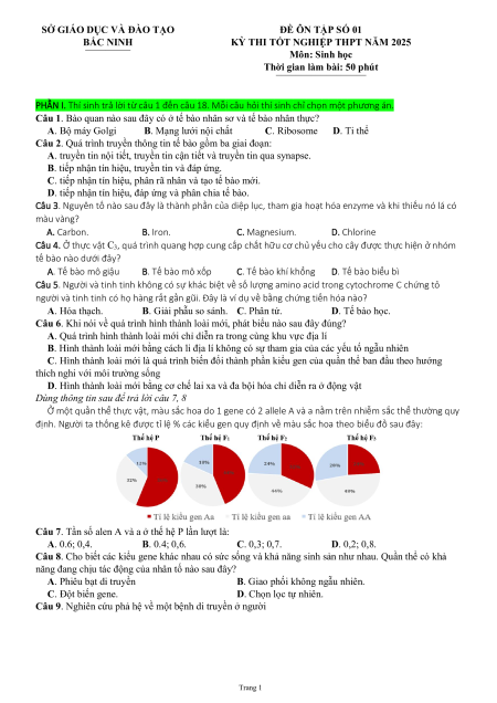 Đề thi thử tốt nghiệp THPT 2025 Sinh học (từ Trường/Sở)