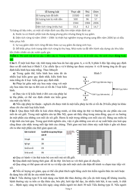 Câu 18. Cho bảng số liệu sau về sự biến động thành phần loài và diện tích rừng ở nước ta: Trang 3 Số lượng loài Thực vật Thú Chim