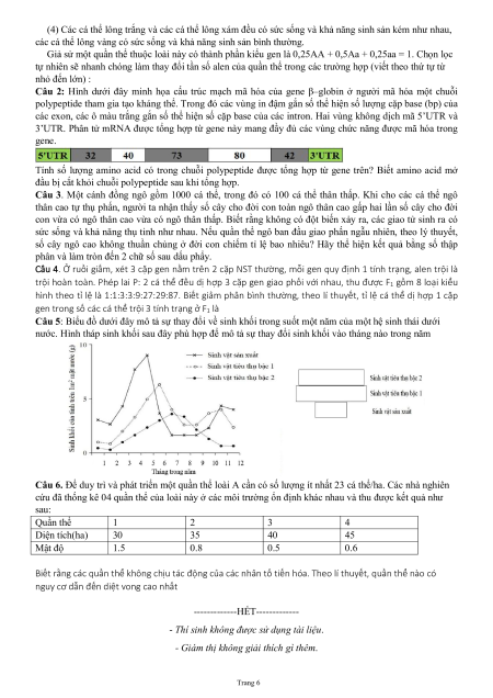 Câu 10. Một loài thực vật, xét 1 gen có 2 alen, alen A trội hoàn toàn so với alen Nghiên cứu thành phần