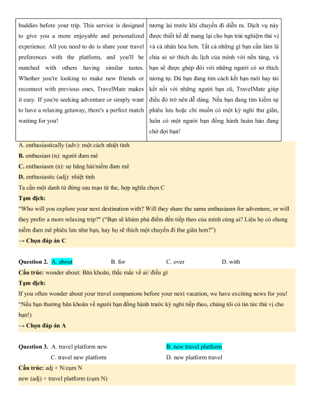 Question 3. A. travel platform new B. new travel platform C. travel new platform D. new platform travel Question 4. A. who has B. had C. to have D. having Question 5. A. take B. make C. give D. do Question 6. A. have B. to having C. to have D. having