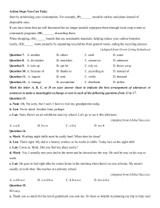 (Adapted from Global Success) A. c-d-b-a-e B. c-e-d-b-a C. d-b-a-e-c D. d-e-a-b-c Question 15. Hi Lucy,