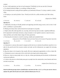 (Adapted from World Wildlife Fund and United Nations Environment Programme materials) A. e-c-b-a-d B. e-a-c-d-b C. e-c-a-b-d D. d-e-a-c-b Question 17.