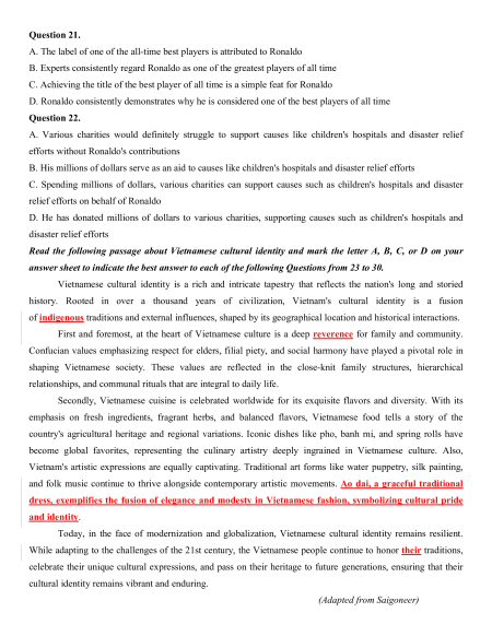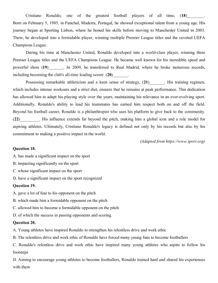 (22)_________. His influence extends far beyond the pitch, making him a global icon and a role model for