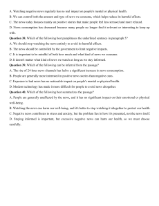 e. I'm hoping we can catch up before I leave. Would you be free for a coffee sometime soon? Best wishes, James (Adapted from THINK) A. b-e-a-d-c B. c-b-d-e-a C. a-d-c-b-e D. e-c-b-a-d Question 16.