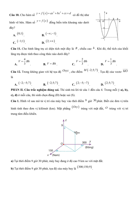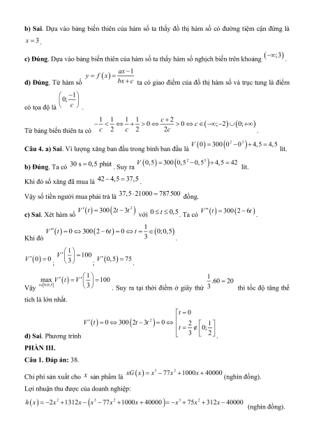 PHẦN II. Câu trắc nghiệm đúng sai. Thí sinh trả lời từ câu 1 đến câu 4. Trong mỗi ý a), b),
