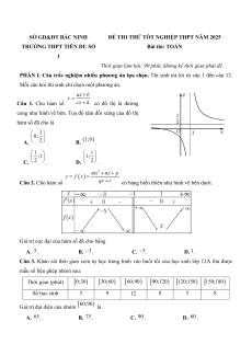 TRƯỜNG THPT TIÊN DU SỐ Bài thi: TOÁN 1