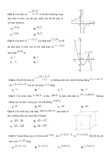 Giá trị đại diện của nhóm 60;90 là A. 65. B. 75. C. 90. D. 60 . ax b y Câu 4. Cho hàm số