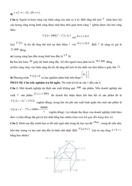 c), d) ở mỗi câu, thí sinh chọn đúng (Đ) hoặc sai (S).