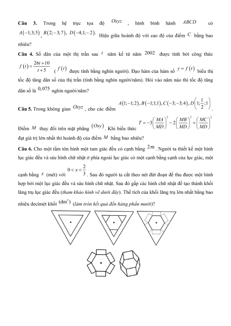 Câu 12. Trong không gian với hệ tọa độ Oxyz , cho điểm M 2
