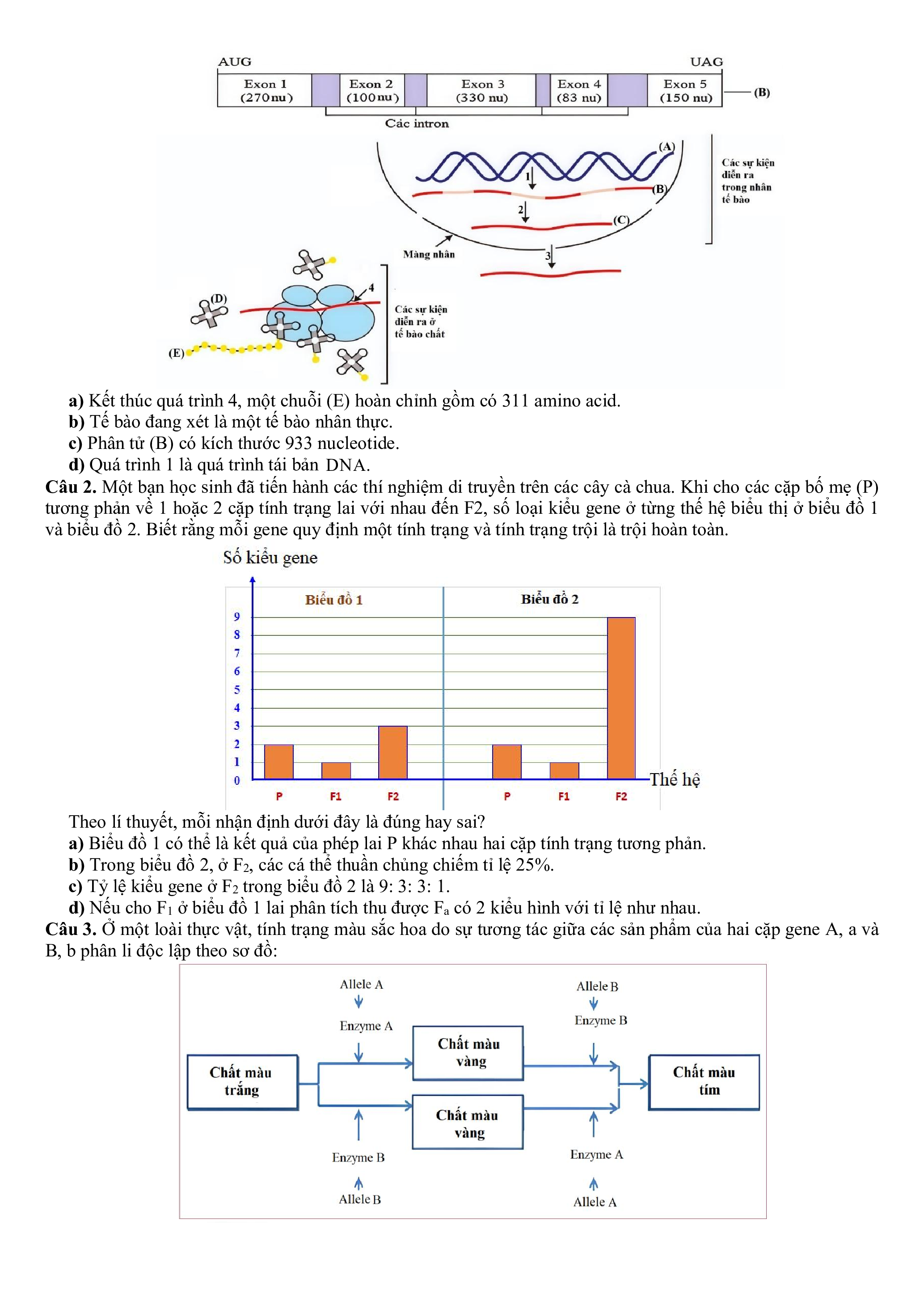 d) Nếu cho F1 ở biểu đồ 1 lai phân tích thu được Fa có 2 kiểu hình vơi tỉ lệ như nhau.