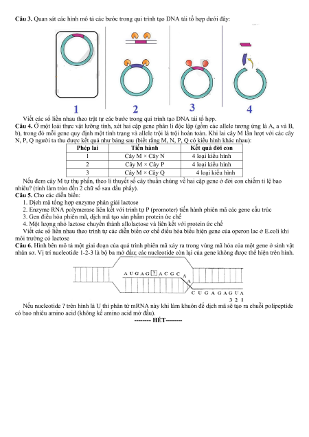Câu 4. Trong công nghệ DNA tái tổ hợp, enzyme cắt giơi hạn Retrictase được dùng để