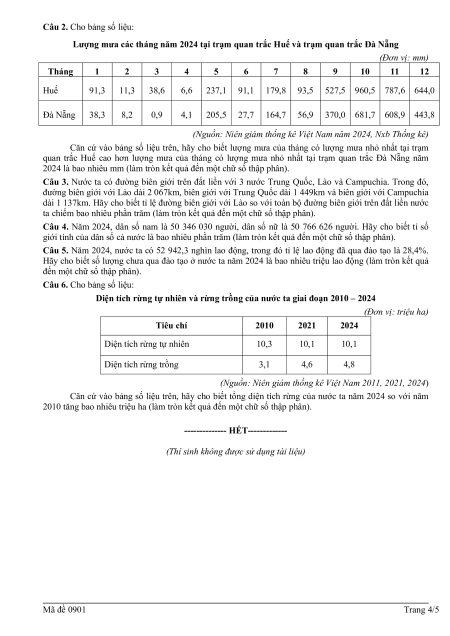 (Thí sinh không được sử dụng tài liệu) Mã đề 0901 Trang 4/5