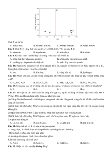Câu 4: Acetic acid không phản ứng được với chất nào sau đây? A. NH3. B. Na. C. NaHCO3. D. Na2SO4.