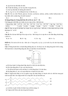 Câu 18: Pin Galvani thiết lập từ hai cặp oxi hóa - khử trong số các cặp trên có sức điện động chuẩn bằng 1,562V là A. Zn - Fe. B. Al - Ag. C. Zn - Ag. D. Fe - Cu.
