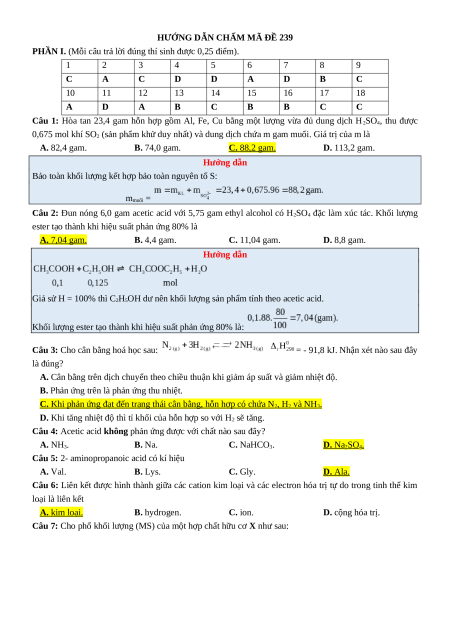 PHẦN I. Thí sinh trả lời từ câu 1 đến câu 18. Mỗi câu hỏi thí sinh chỉ chọn một phương án.