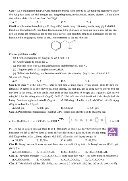 Câu 8. Amphetamine (còn được gọi là hồng phiến) là một dạng chất ma tuý có tác dụng gây kích thích