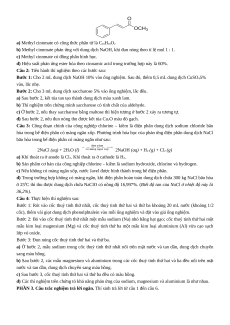Câu 1: Methyl cinnmate là một ester có công thức cấu tạo dưới đây và có mùi thơm của dâu tây
