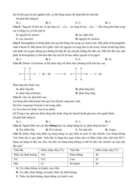 Câu 13. Điểm chớp cháy được áp dụng trong các quy định an toàn về vận chuyển. Cục Hàng không