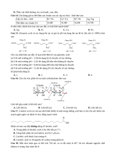 Câu 18. Một chai rượu gạo có thể tích 750 mL và có độ rượu là 400. Số mL ethanol nguyên chất