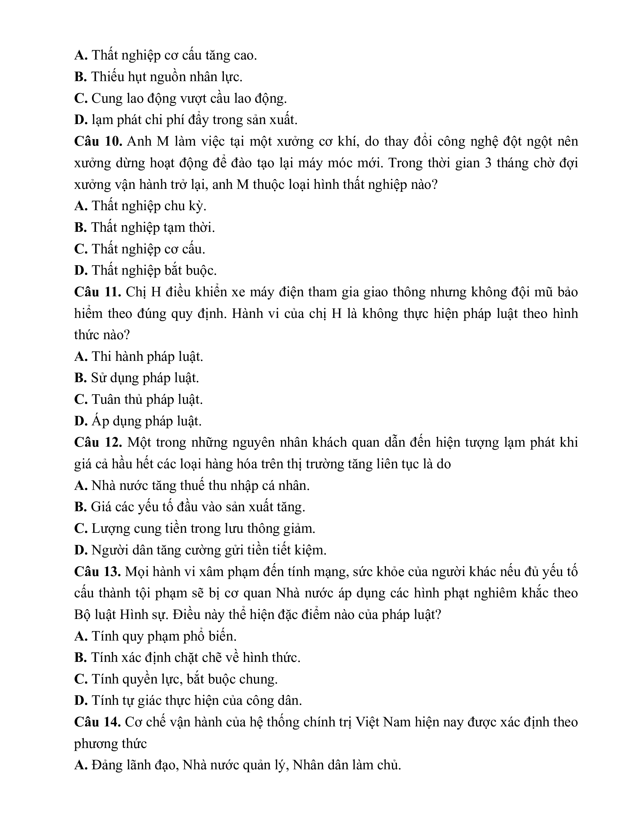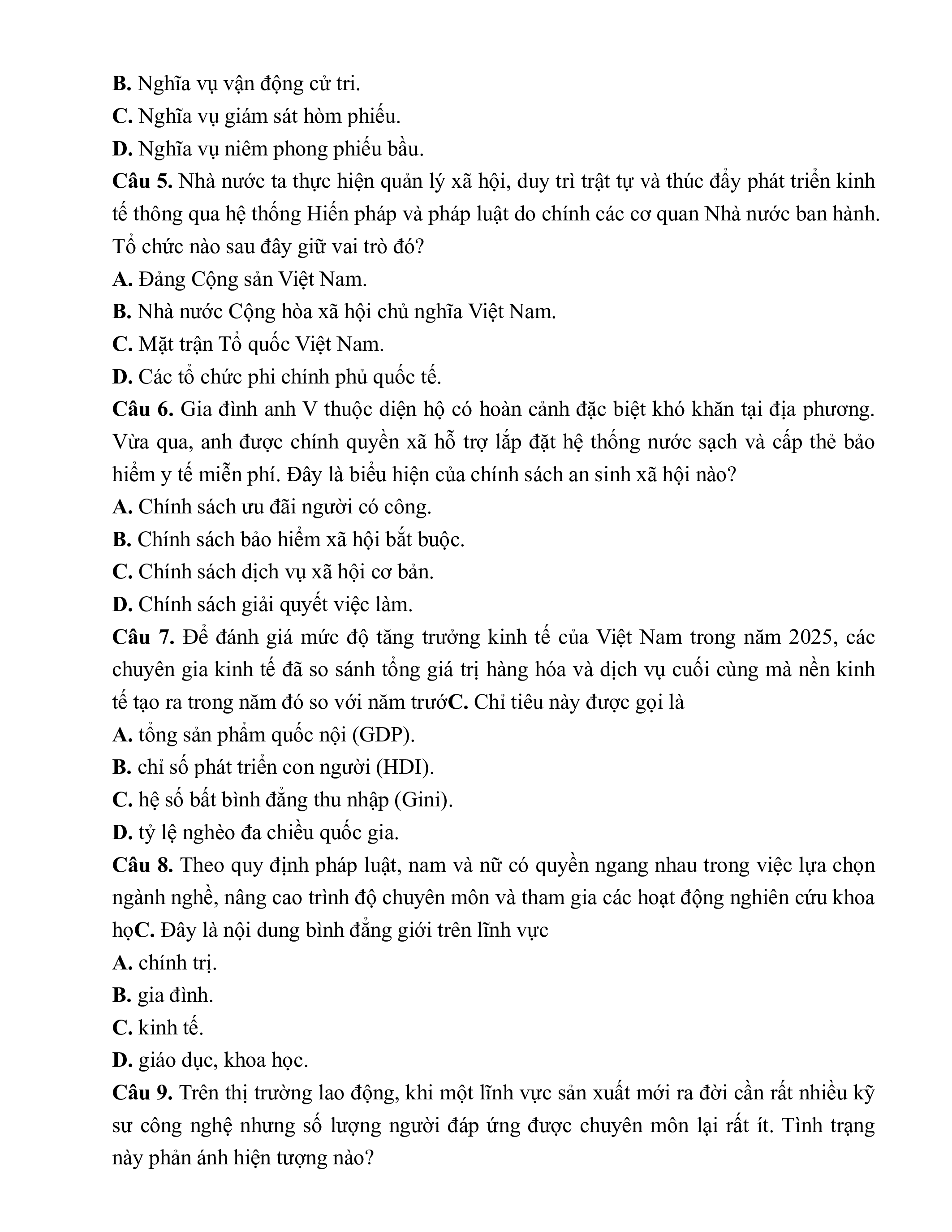 Đề thi thử Tốt nghiệp THPT Kinh tế pháp luật 2026 có đáp án