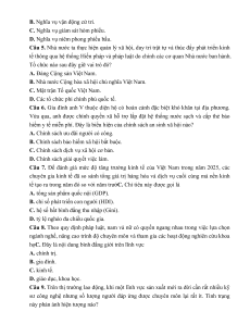 Câu 17. Hoạt động nào sau đây của Nhà nước Việt Nam không phản ánh trực tiếp quá