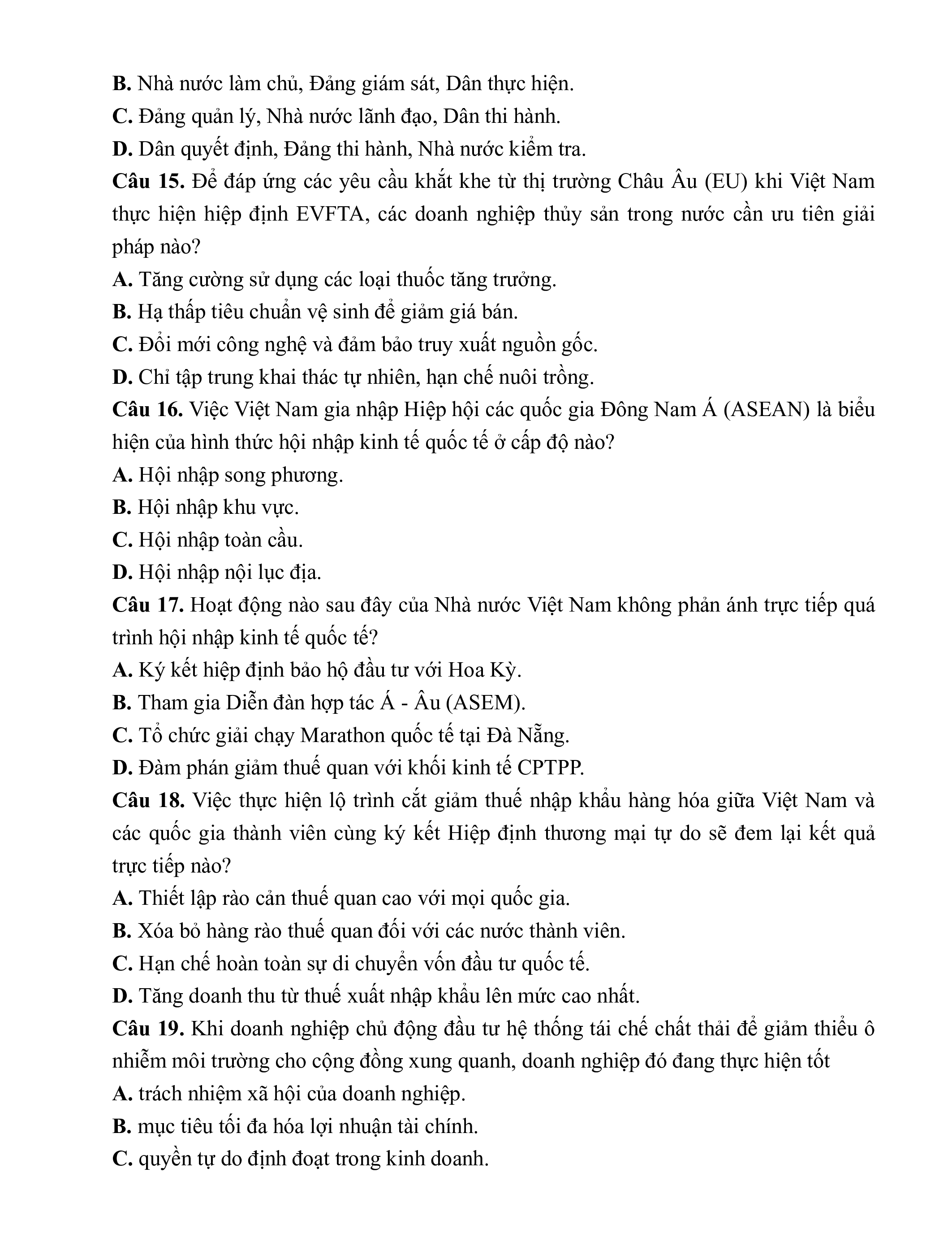 Câu 18. Việc thực hiện lộ trình cắt giảm thuế nhập khẩu hàng hóa giữa Việt Nam và