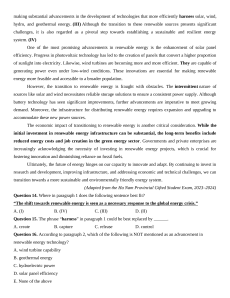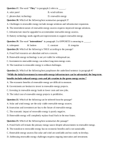 Question 16. According to paragraph 2, which of the following is NOT mentioned as an advancement in renewable energy technology? A. wind turbine capability B. geothermal energy C. hydroelectric power D. solar panel efficiency E. None of the above