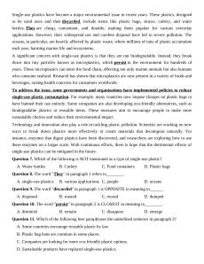 Question 8. The word "They" in paragraph 1 refers to________. A. single-use plastics