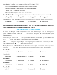 Question 14. In which paragraph does the writer discuss scientific efforts to address plastic pollution? A. Paragraph 1 B. Paragraph 4 C. Paragraph 2 D. Paragraph 3