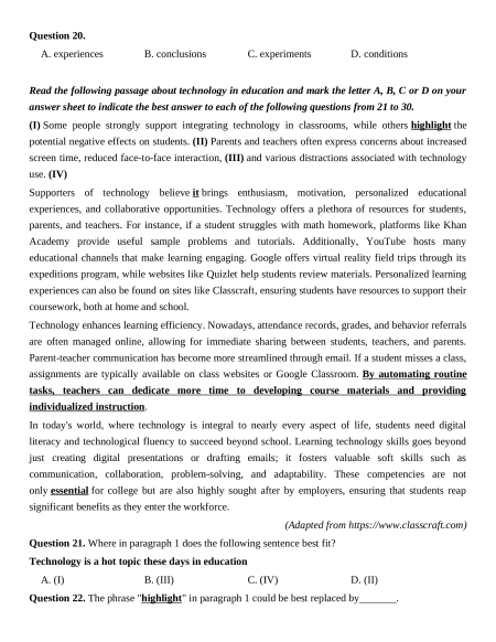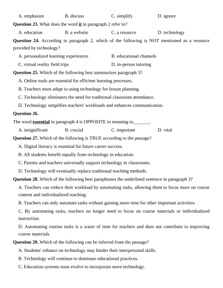 Read the following passage about technology in education and mark the letter A, B, C or D on your