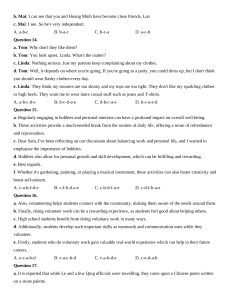 or high heels. They want me to wear more casual stuff such as jeans and T-shirts. A. a-b-c-d-e B. b-c-d-a-e C. d-b-c-a-e D. b-c-a-e-d Question 15.