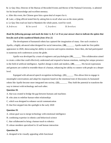in the field of artificial intelligence. Apollo's design is sleek and modern, (20)______. His facial expressions