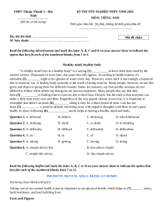 health. In short, following (6) ____________ surely helps in having a healthy mind and body. Question 1. A. believed B. believe C. believing D. which believed Question 2. A. drinking B. drink C. to drink D. to drinking