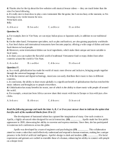 countries around the world in Viet Nam. A. d-c-a-b-e B. c-a-d-b-e C. d-b-c-e-a D. e-b-a-c-d Question 17.
