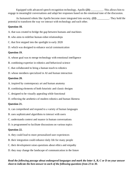 Apollo, a highly advanced robot designed for social interaction, (18) _________ . Apollo made her first public
