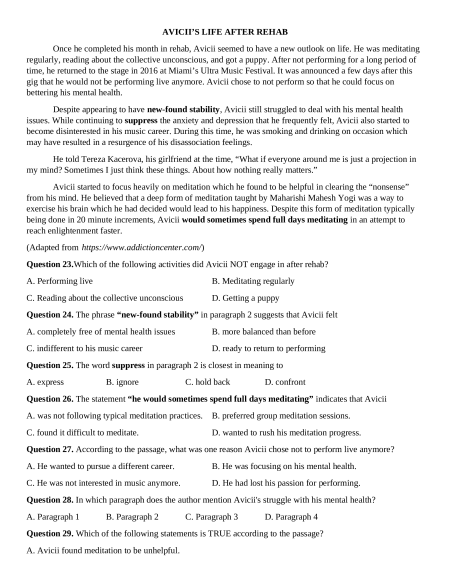 sheet to indicate the best answer to each of the following questions from 23 to 30.