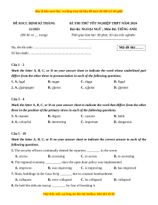 three in the position of the primary stress in each of the following questions. 3. A. manner B. degree C. custom D. habit 4. A. colourful B. interesting C. important D. dangerous Câu 5 - 19