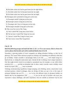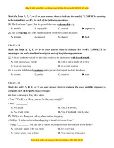 21. His face turned red with embarrassment when they called his name. A. became B. stopped C. shared D. built Câu 22 - 23