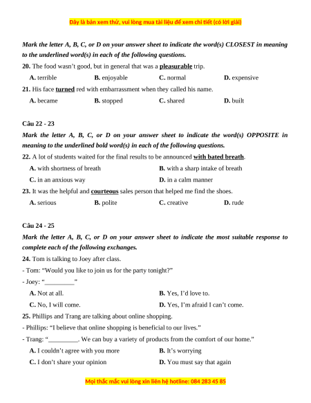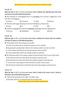 23. It was the helpful and courteous sales person that helped me find the shoes. A. serious B. polite C. creative D. rude Câu 24 - 25