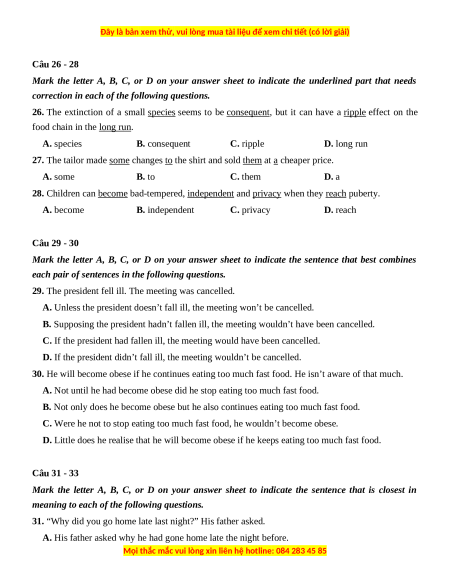 Chúng tôi đảm bảo đủ số lượng đề đã cam kết hoặc có thể nhiều hơn, tất cả có BẢN WORD, LỜI GIẢI CHI TIẾT và tải về dễ dàng.