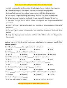 Câu 6. Ngoc's personal information was leaked. She was aware of the danger of the Internet.