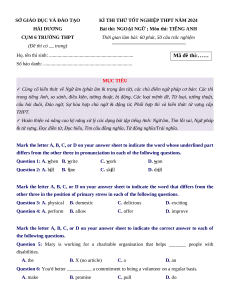 Đề thi thử tốt nghiệp Tiếng Anh Liên trường THPT Hải Dương năm 2024