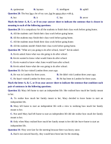 Question 30: "What are you going to do after school, Anne?" Kevin asked.