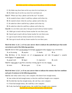 Câu 29. Electric bikes are becoming increasingly popularnowadays thanks to its convenience. A. are becoming B. popular C. thanks D. its