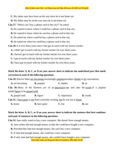 Câu 27. "Where can I buy a phone card in this city?" he asked.