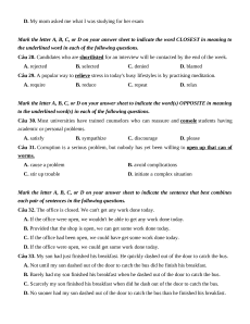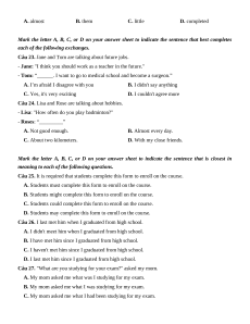 Mark the letter A, B, C, or D on your answer sheet to indicate the correct answer to each of the